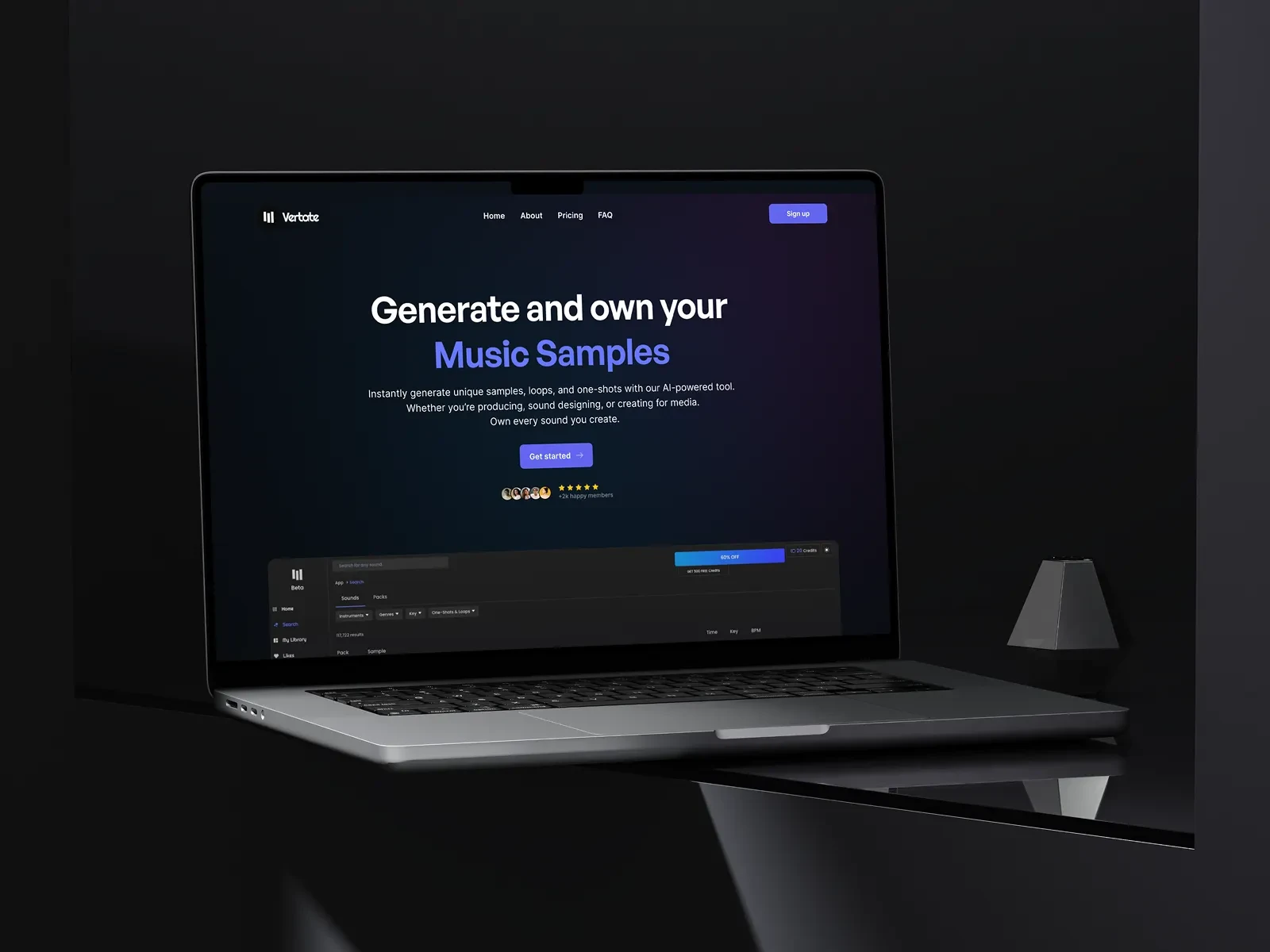 Vertate is revolutionizing music production by allowing creators to instantly generate unique loops and one-shots. Unlike stock libraries, Vertate offers full ownership of every AI-generated sound, giving producers true creative freedom. The goal is to build a marketing and authentication experience that reflects the speed and innovation of the core AI technology.